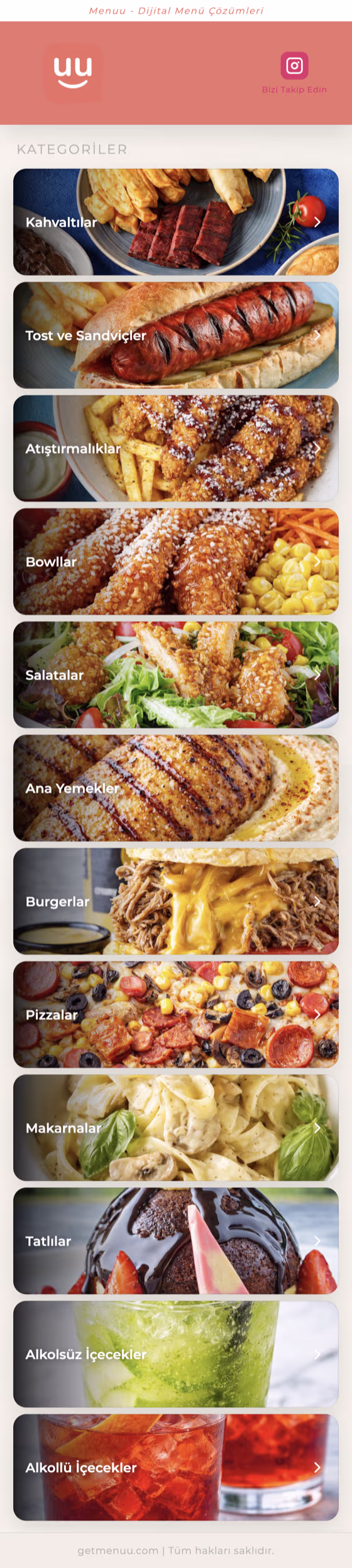 Menünüzü dakikalar içinde oluşturun. Fotoğraf, fiyat, kategori — hepsi tek yerden.